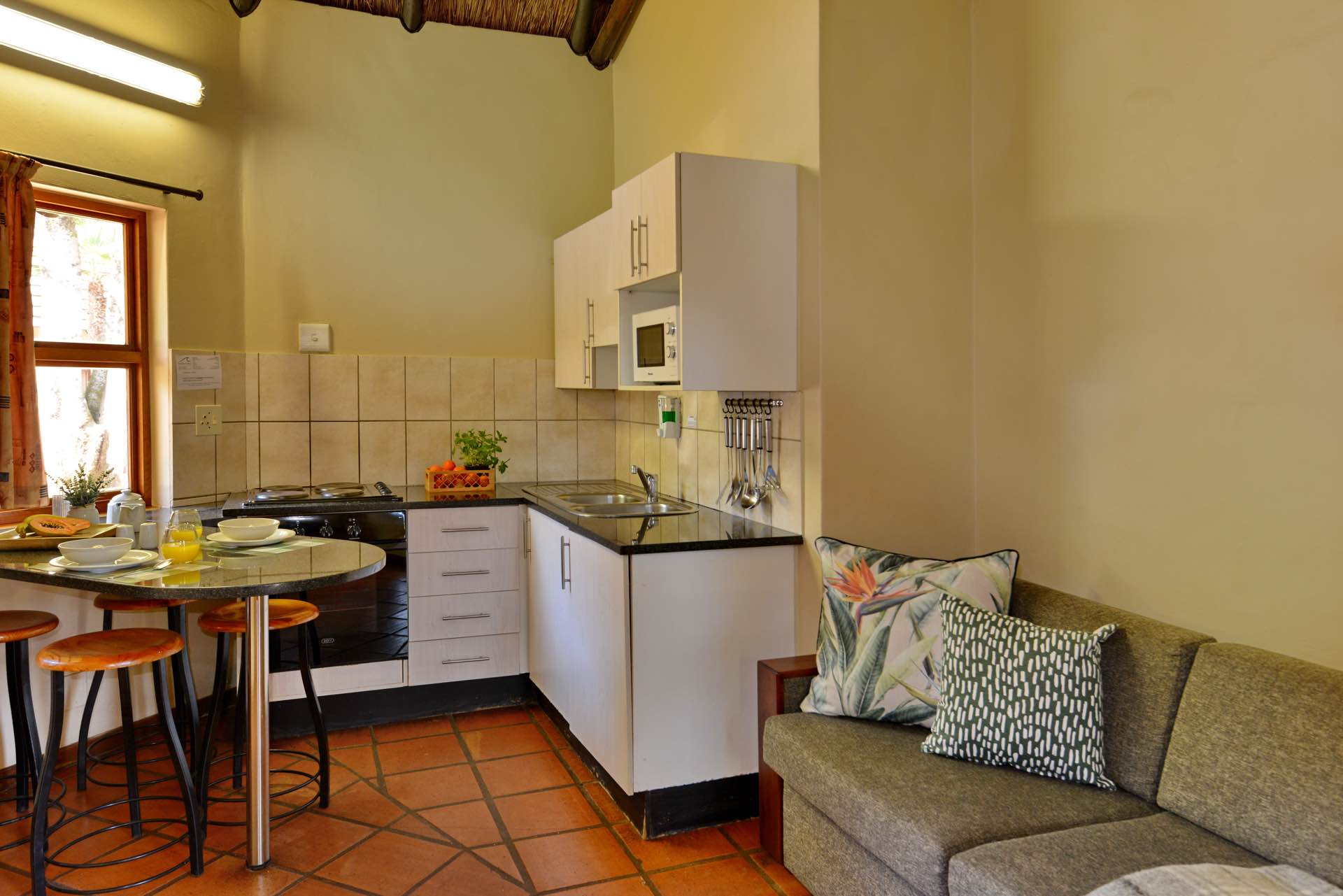 The Four-Sleeper Express Chalets are ideal for small family getaways. Just a short walk from the river and the Resort’s swimming pools, they offer the perfect setting to enjoy all that Sudwala has to offer.